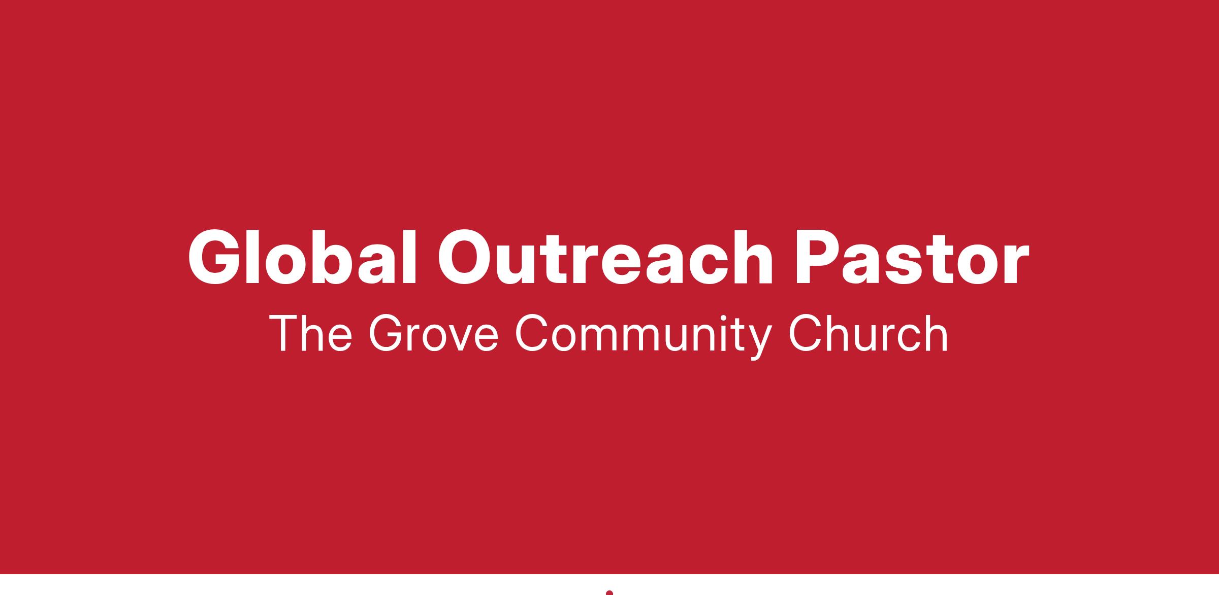 The Grove loves all people, here in Riverside and around the world. The Global Outreach Pastor brings spiritual vision and oversight to a worldwide effort to communicate the gospel, build churches and disciple leaders. This position is responsible for leading and developing the global missions strategy at The Grove and provides spiritual leadership, pastoral care, and administrative oversight to our outreach initiatives, global partners, and short-term mission teams. The Global Outreach Pastor will be deeply passionate about God’s heart for all people, have strong organizational and communication skills, and be able to mobilize and inspire others to engage in ministry worldwide.