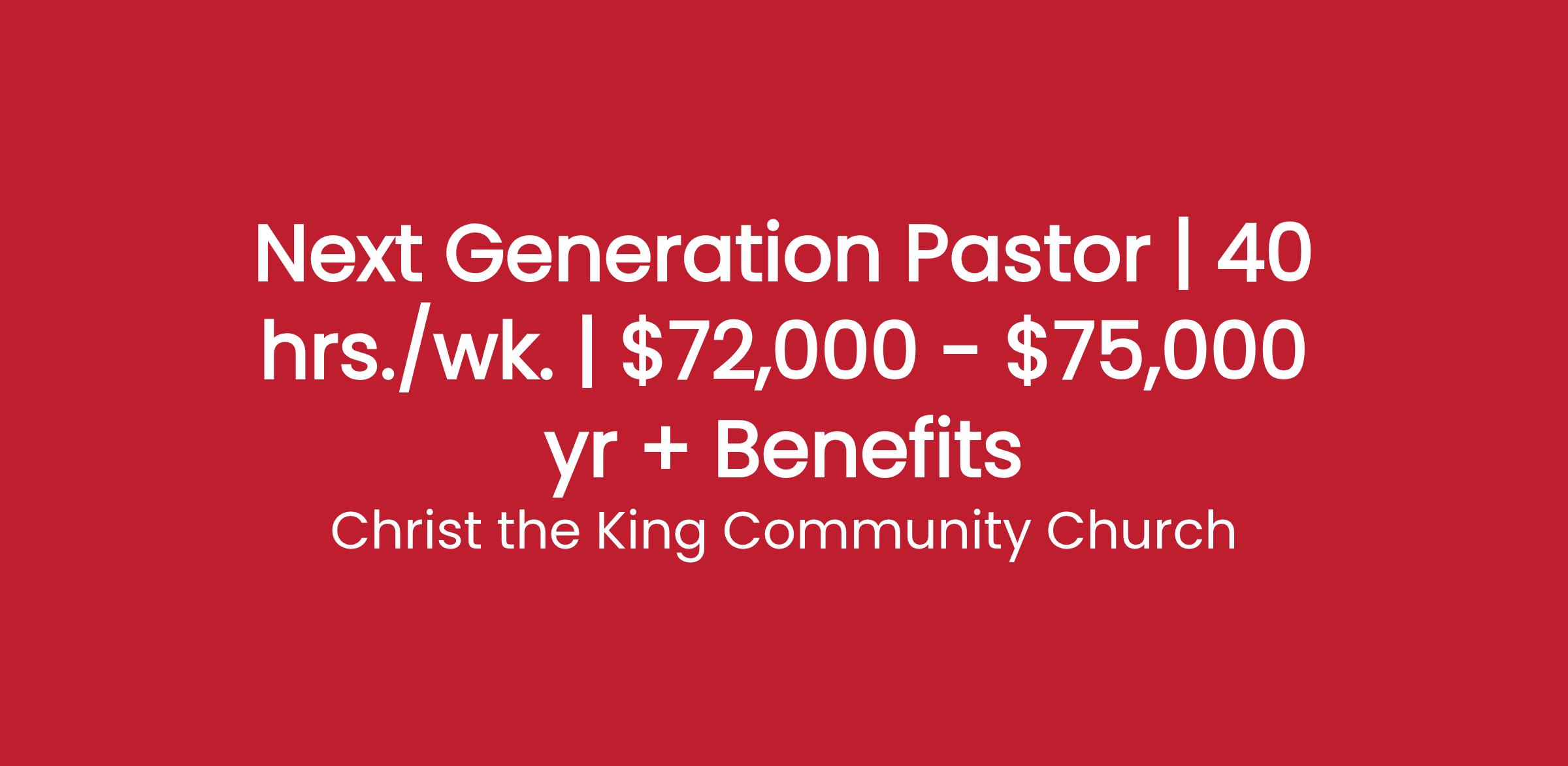 Next Generation Pastor | 40 hrs./wk. | $72,000 - $75,000 yr + Benefits