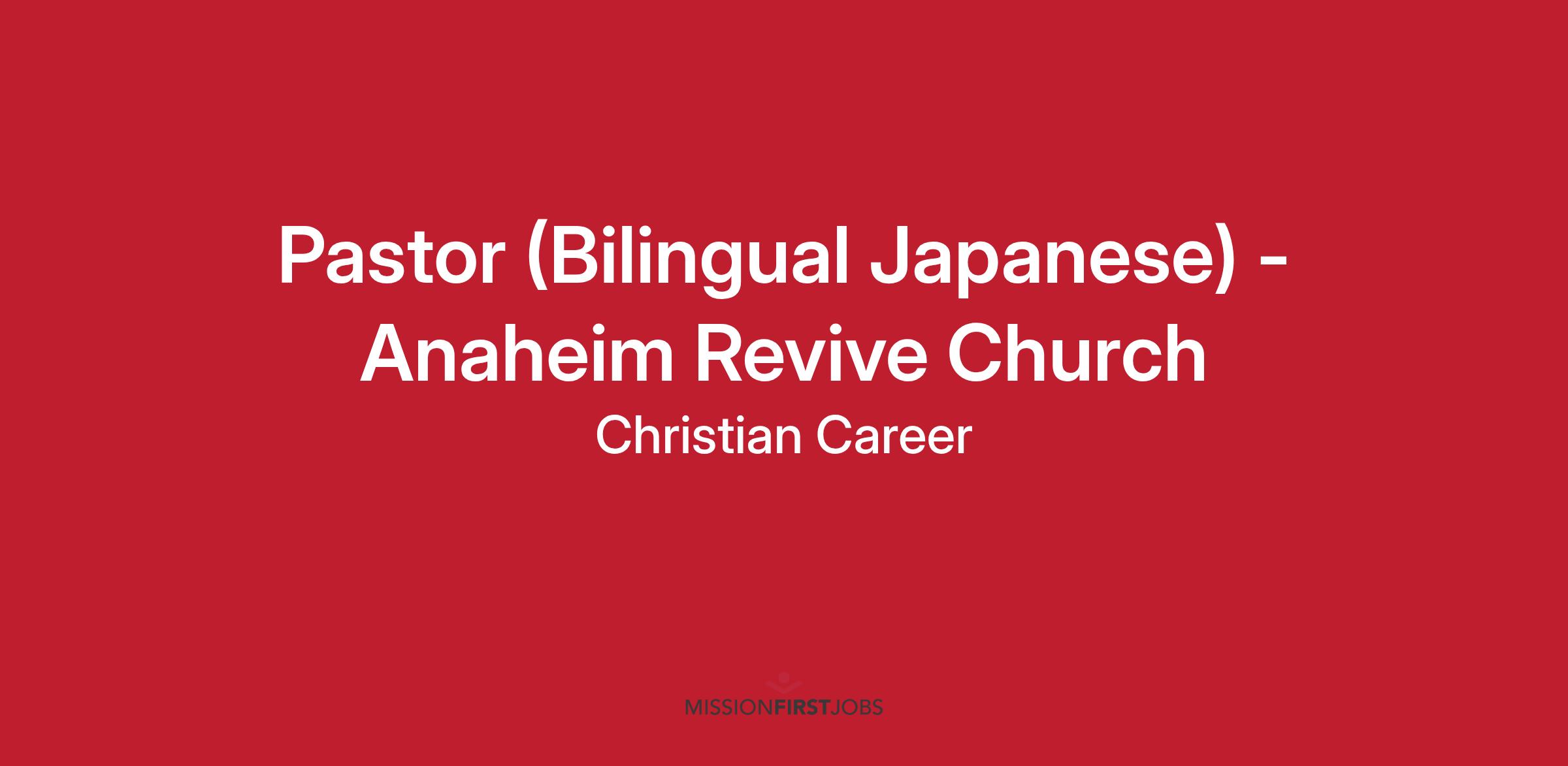 Anaheim Revive Church (ARC) is seeking a Japanese Ministry Pastor. The primary purpose of this position would be to serve as the Japanese Ministry Pastor of the congregation, under the direction and oversight of the Board of Elders and Lead Pastor, to help establish and carry out the ARC mission and vision for the Japanese-speaking congregation.  The ideal candidate will be gifted and called to reach out to Japanese-speaking young adults and families.