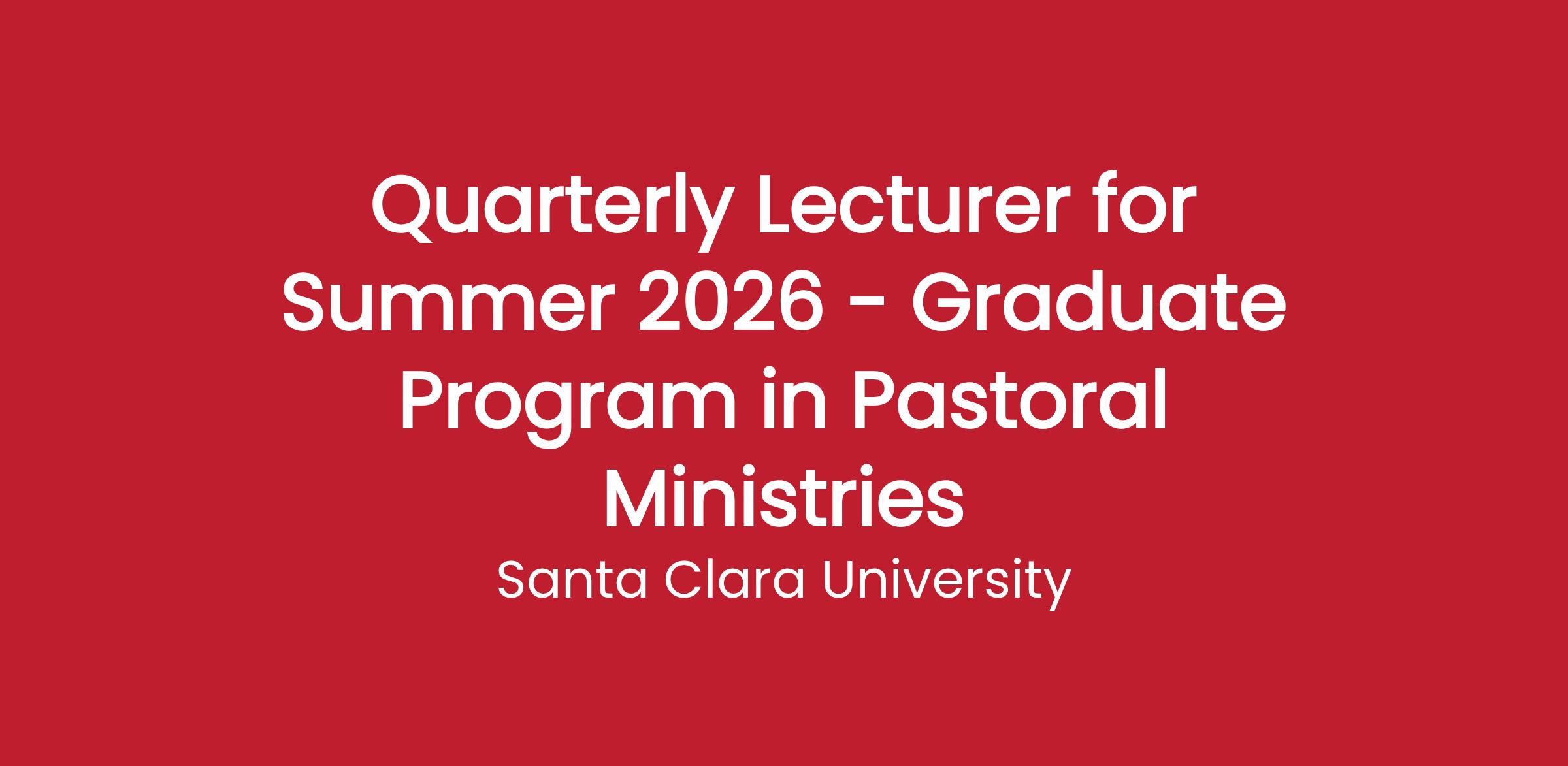 The Graduate Program in Pastoral Ministries in the Department of Religious Studies at Santa Clara University, a Jesuit, Catholic university, seeks applicants for Quarterly Lecturer (non-tenure track) positions to teach Foundations and Process of Catechesis course. Specific assignments will be made according to the academic qualifications of the individual and programmatic need. The Pastoral Ministries program courses are offered in a two modalities: in-person and on-line.