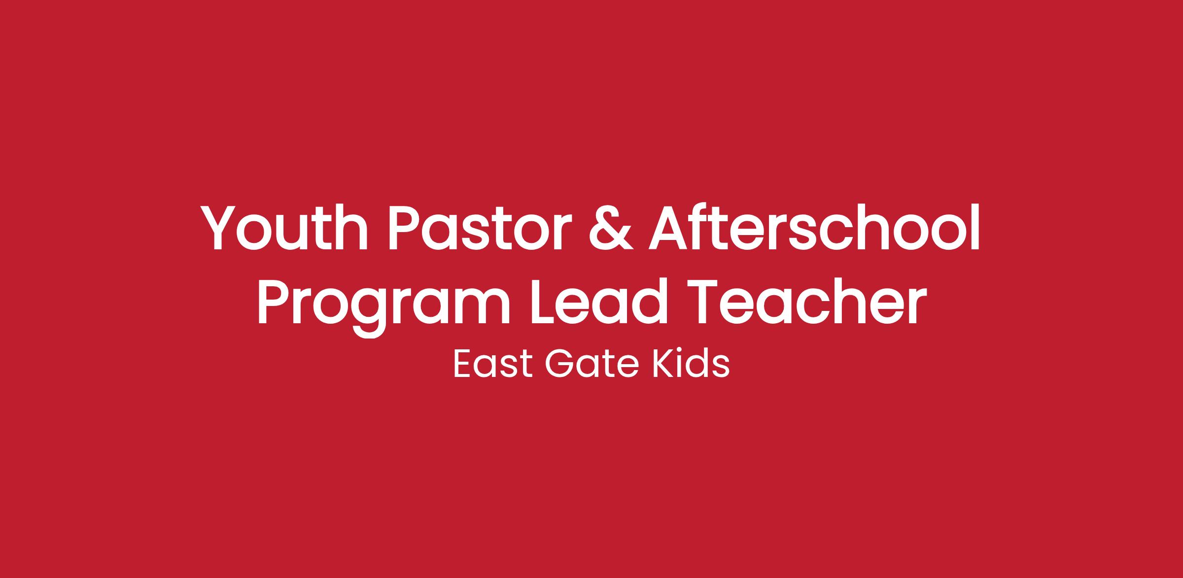 East Gate Church and East Gate Kids are seeking a Youth Pastor & Afterschool Program Lead to serve middle school students (ages 9–13) through structured weekday programming, weekly youth gatherings, and community outreach.
